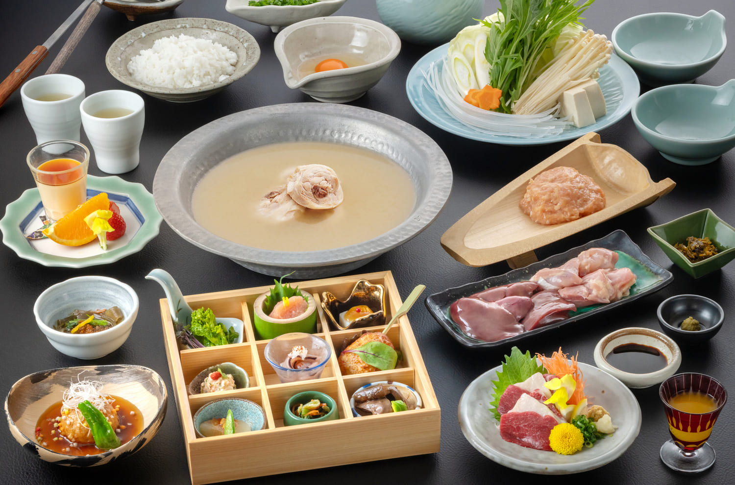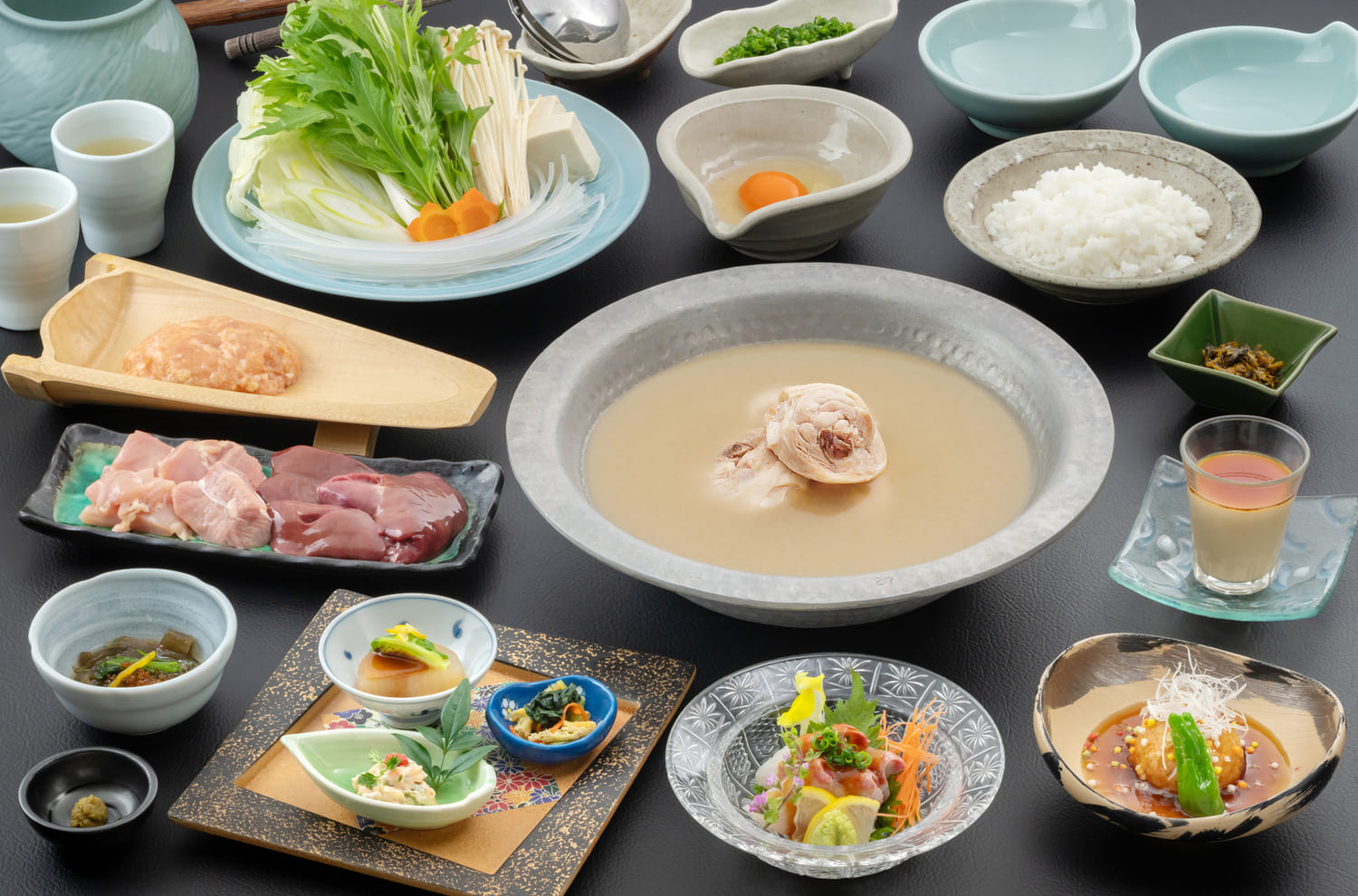 - 華味鳥水たき(ぶつ切り・ミンチ・切身・肝・野菜盛・雑炊または麺)