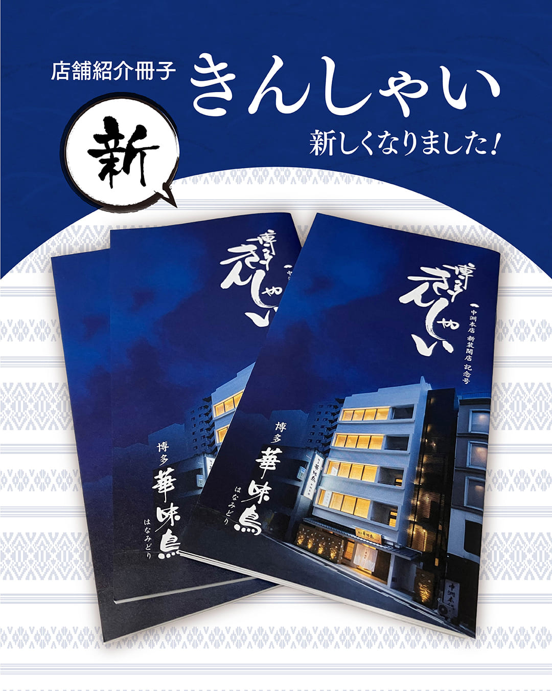 「水たき料亭 博多華味鳥」をはじめとした各店舗を紹介する冊子が、このたび中洲本店の新装開店を記念して新しく生まれ変わりました。