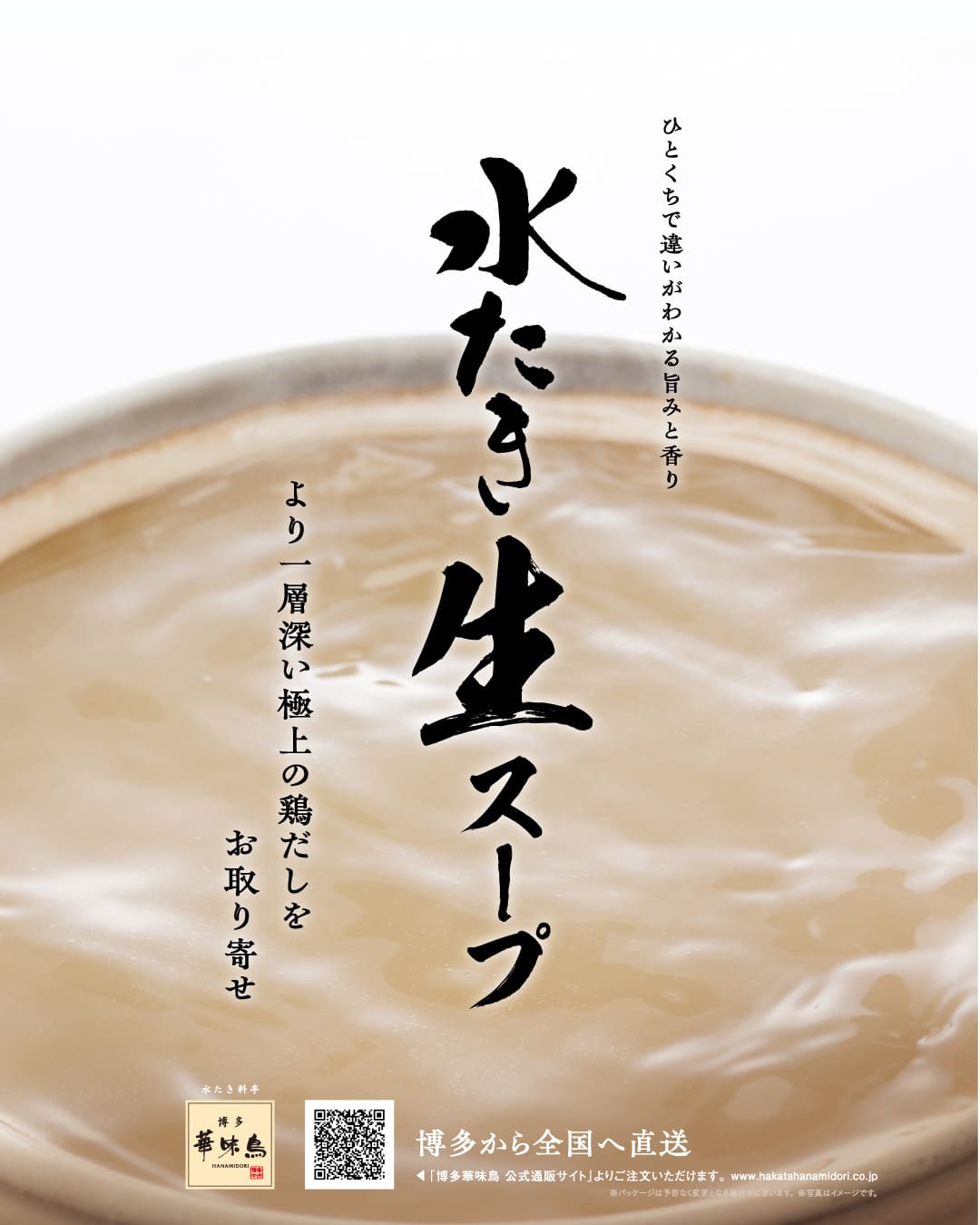 新しくなった水たき生スープをぜひ一度、ご賞味ください。