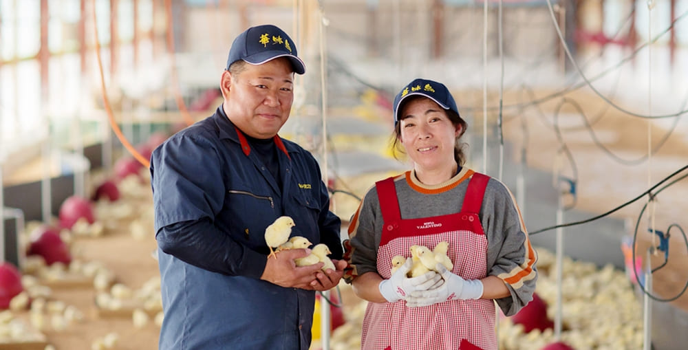 Founder Yoshiharu Kawazu started chicken sales, found out the taste is all about chicken itself. He participated chicken raising and Hanamidori started.