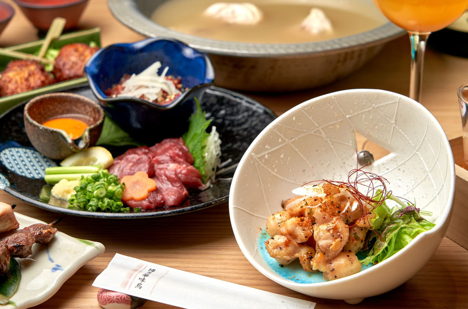 とろける食感の華味鳥生ハム、噛むほどに口に広がる親鳥炭火焼き、芳醇な香りの華味鳥生ハムの粕漬、様々な味をお楽しみ下さい。