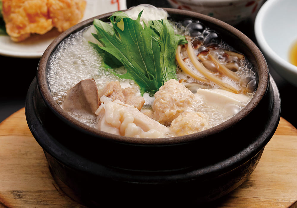 小鉢/前菜三種/華味鳥生ハムと親鳥炭火焼き/替鉢/華味鳥水たき (ぶつ切り・ミンチ・切身・肝・野菜盛・雑炊または麺) /香物 /甘味