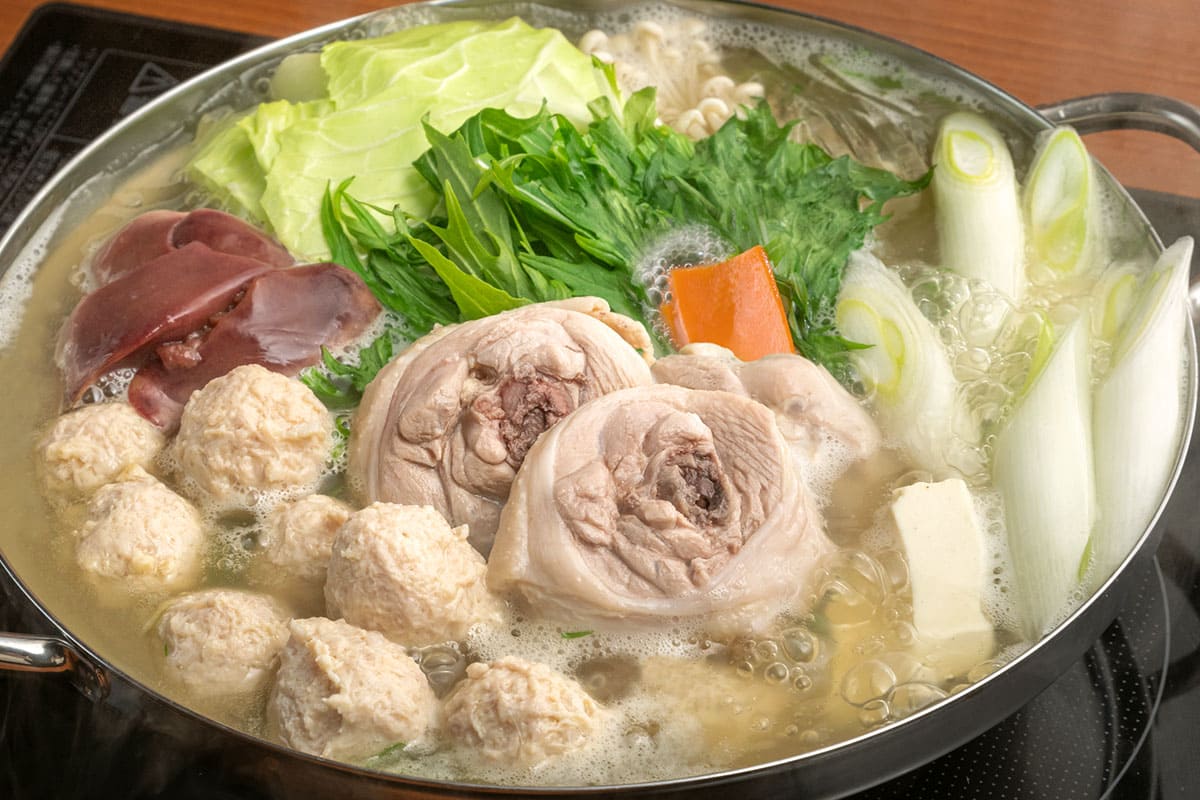 前菜/華味鳥水炊き(ぶつ切り・つくね・切り身・肝・野菜盛)/〆(雑炊orちゃんぽん)/自家製明太子とご飯の食べ放題/デザート