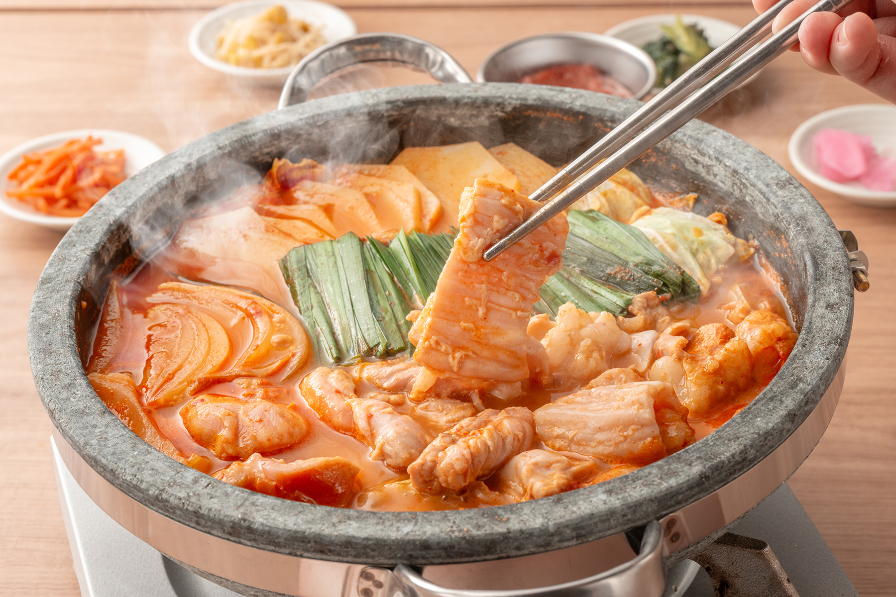 国産牛ホルモンと自社養鶏の九州産華味鳥を旨辛スープで煮込んだ名物「ナッコプセ」は、華味鳥のつくねとタコのうま味が魅力。韓国チキンやチヂミなど定番料理も充実。